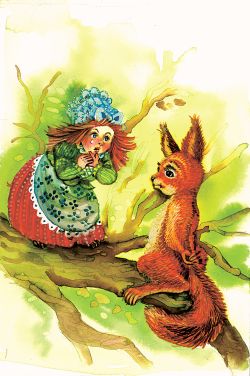 „A helejte, tady si natrhl kabátek, kus tu zůstal...“ a Veveřice podala útržek Holubince. Ta nemohla ani promluvit žalem.